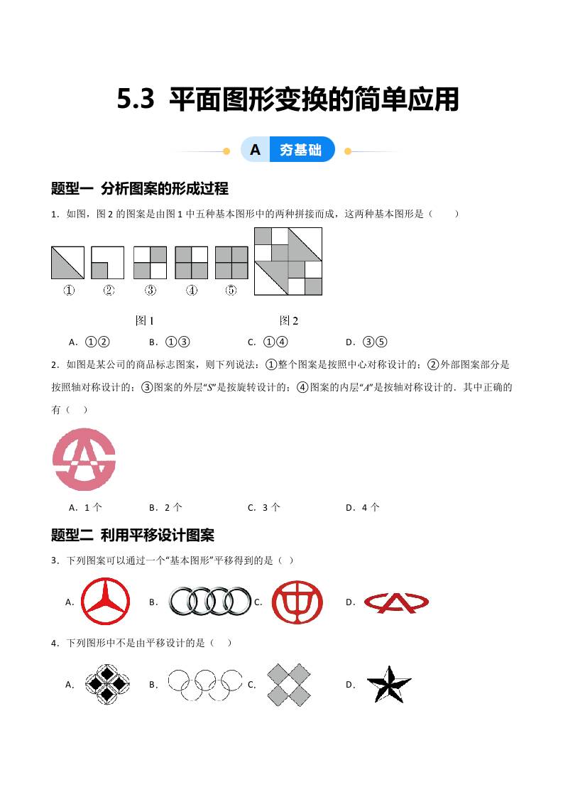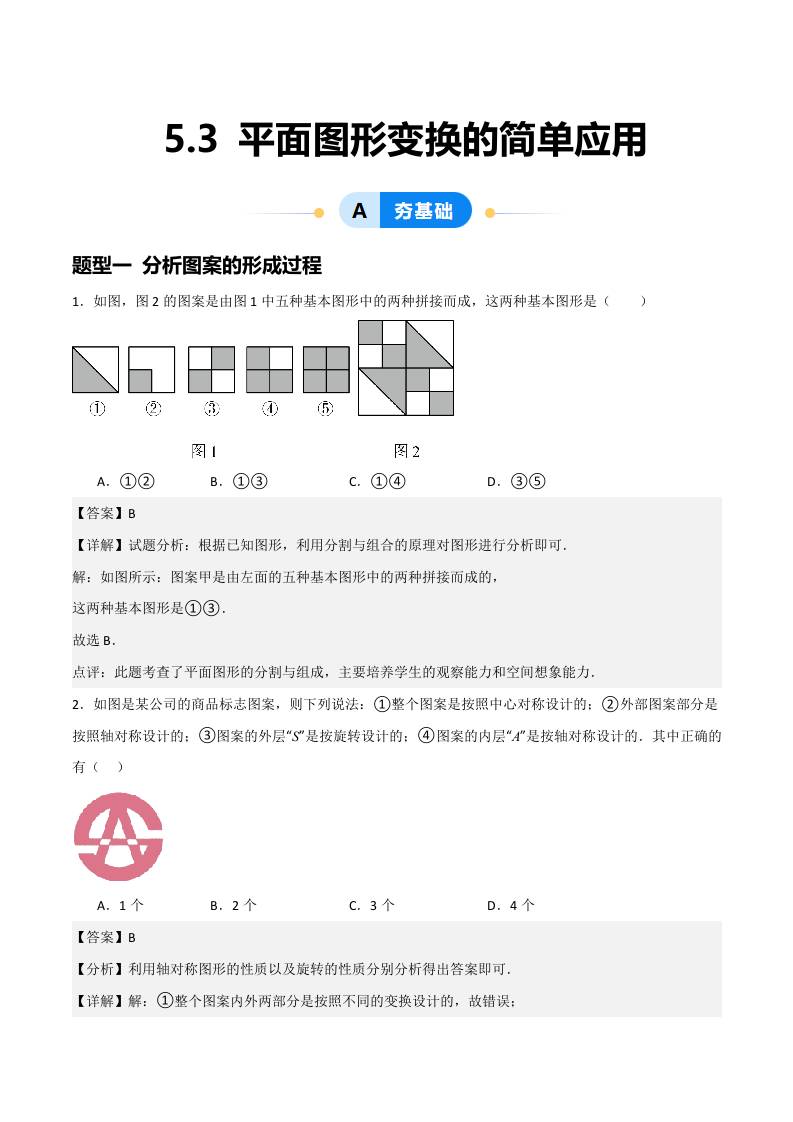 5.3 平面图形变换的简单应用(5大题型提分练)(解析版)