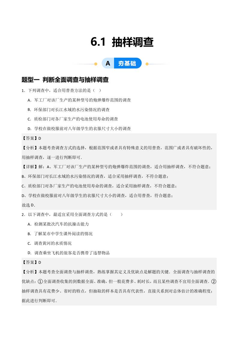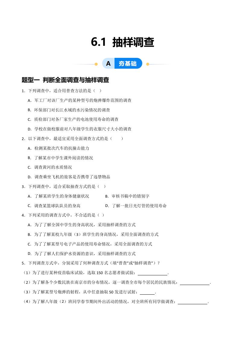 6.1 抽样调查(4大题型提分练)(原卷版)