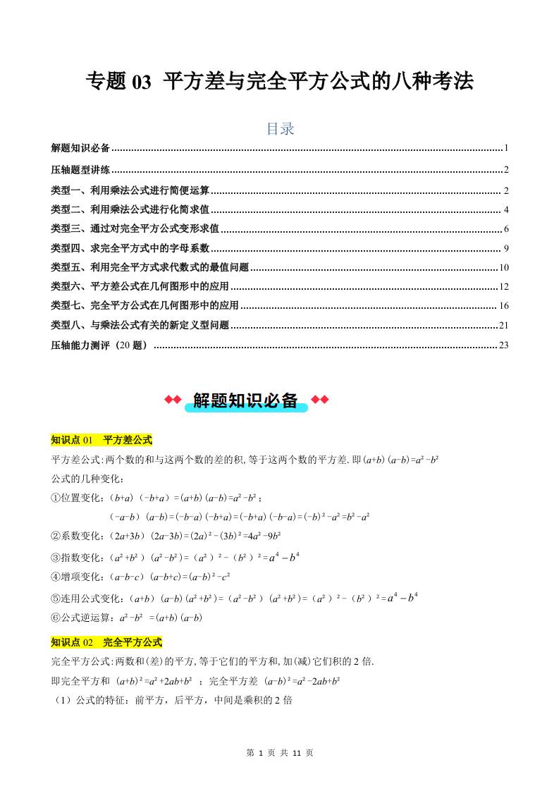 专题03 平方差与完全平方公式的八种考法(原卷版)