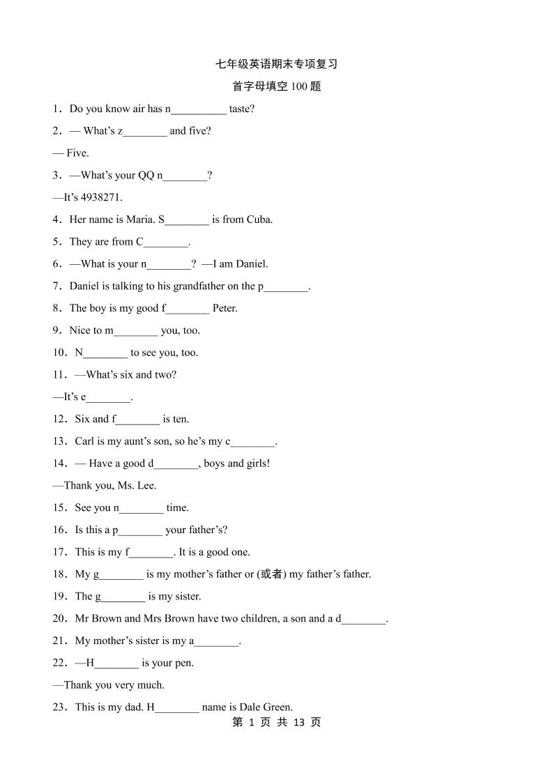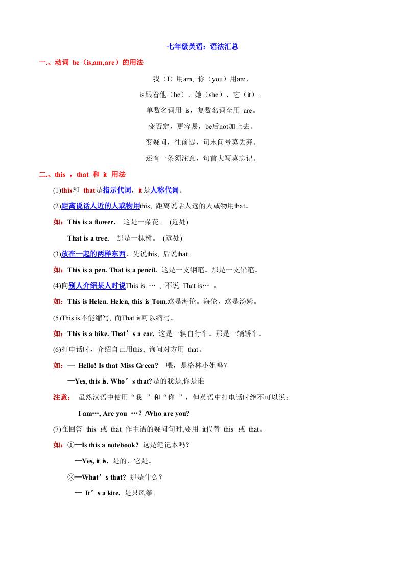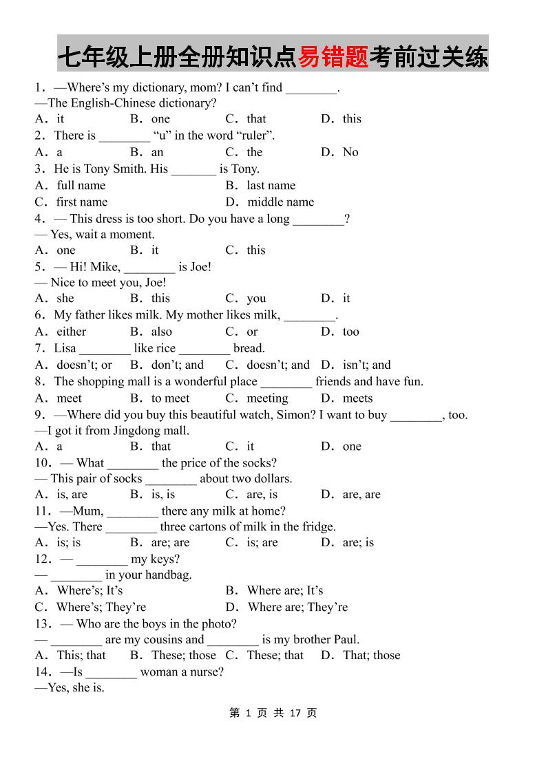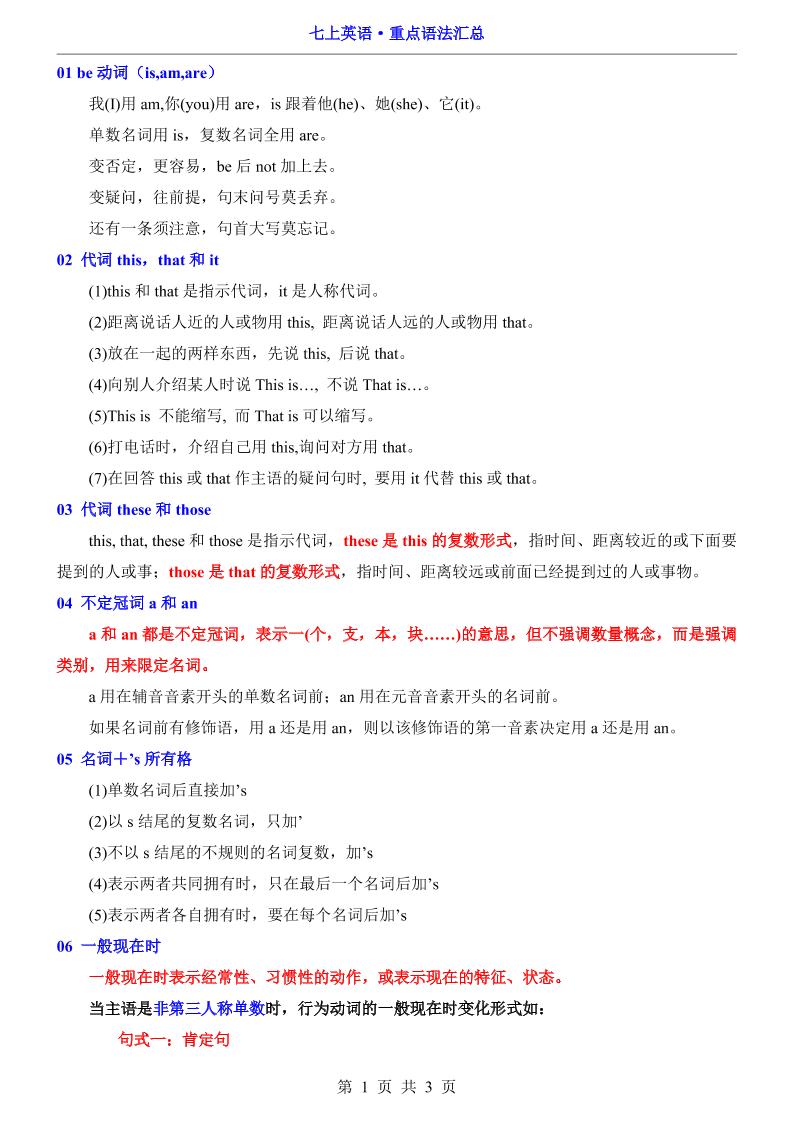 新版七年级上册英语语法每日一练新版七年级上册英语语法每日一练【答案】