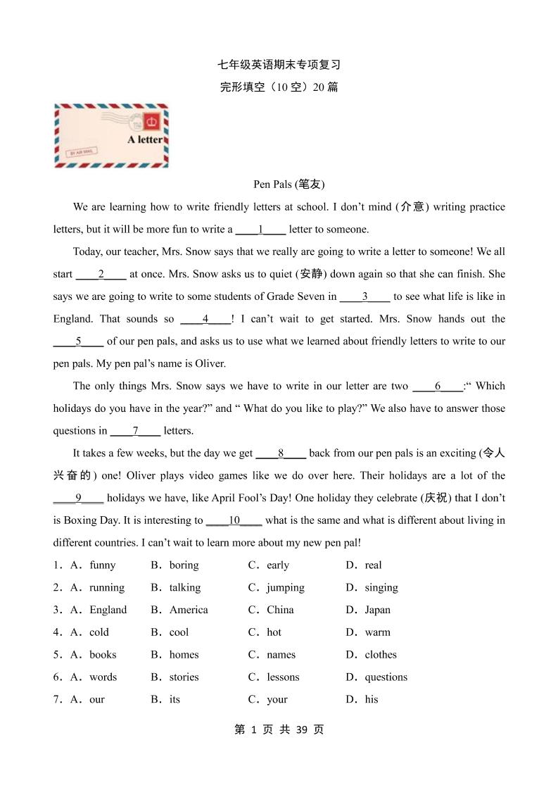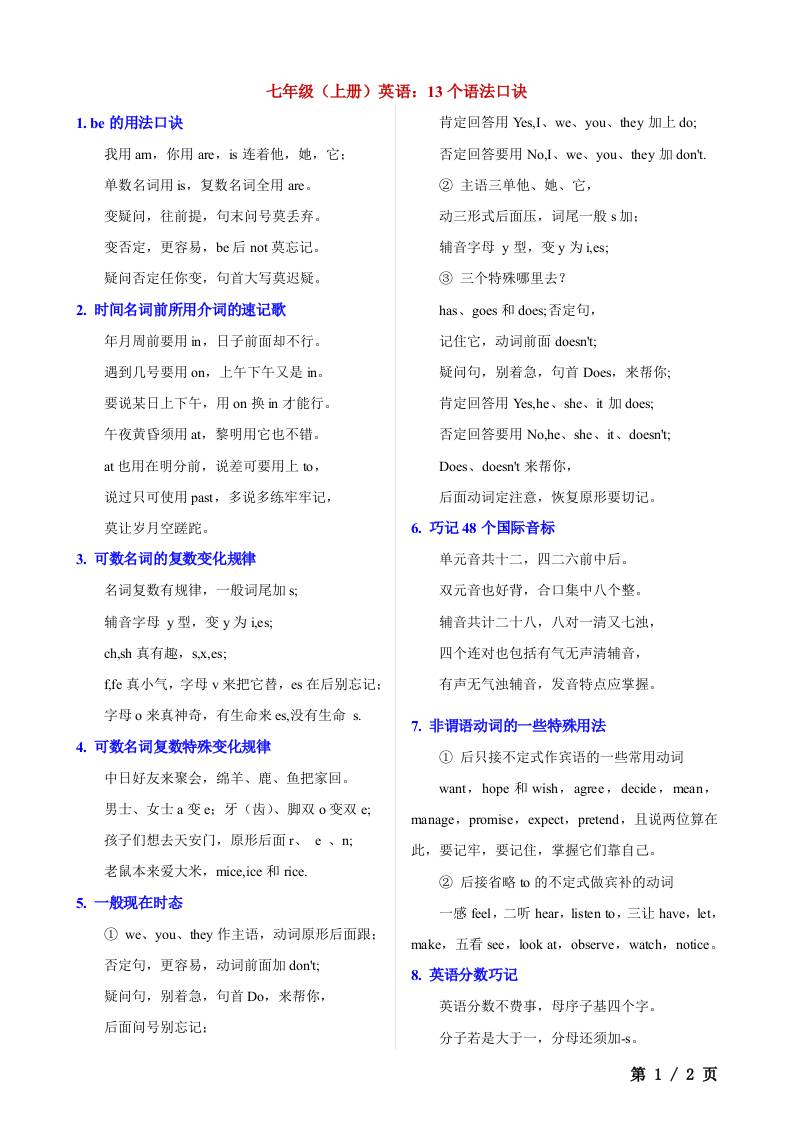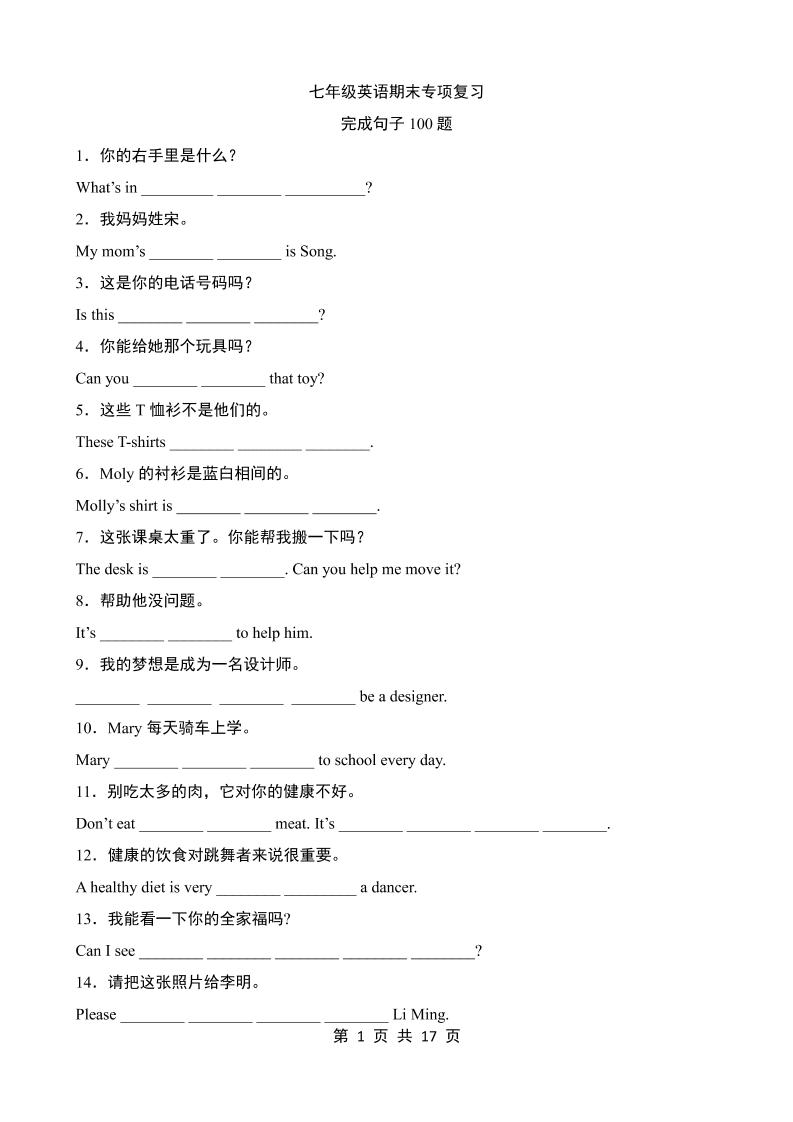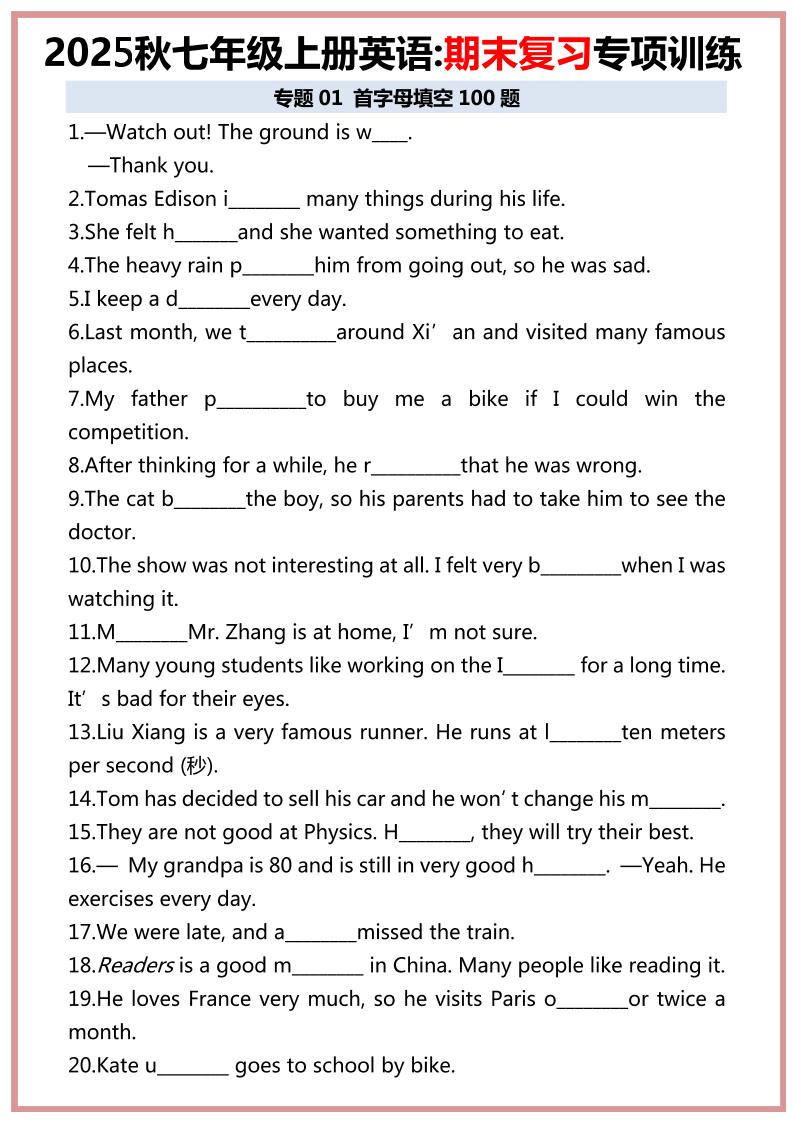 新版七年级上册英语语法每日一练新版七年级上册英语语法每日一练【答案】