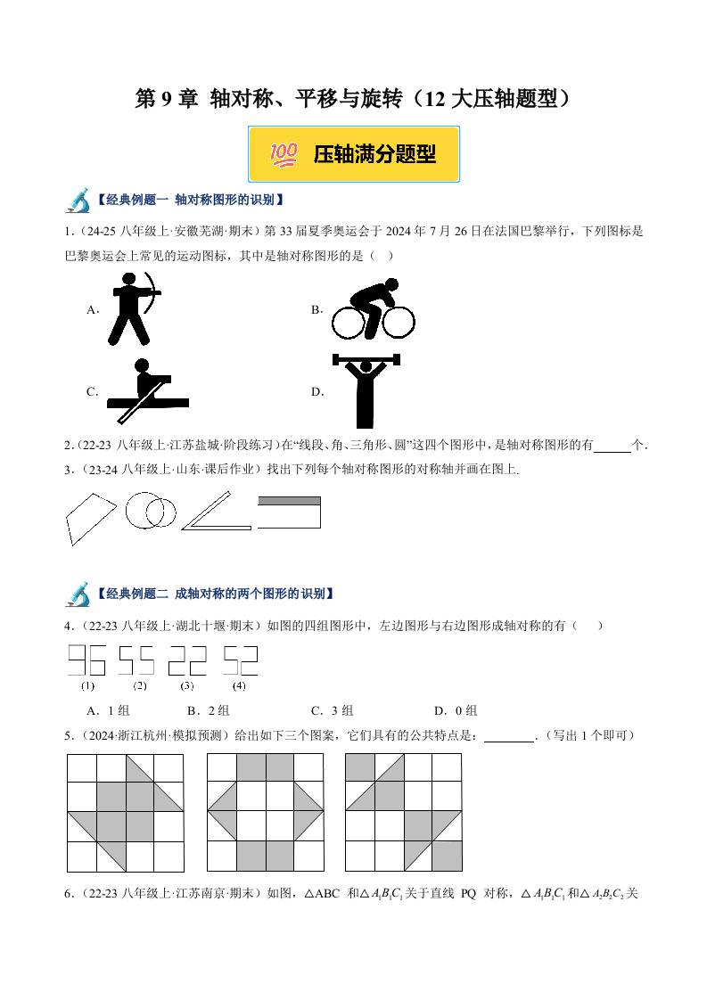 第9章 轴对称、平移与旋转(12大压轴题型)(原卷版)
