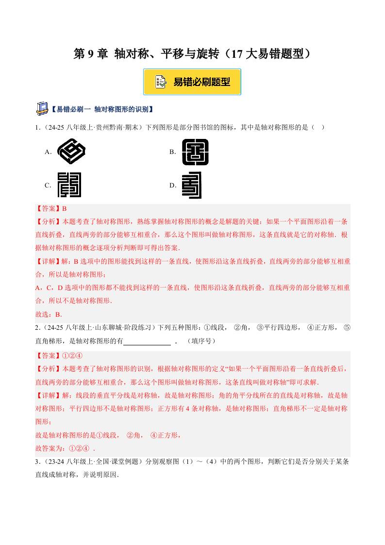 第9章 轴对称、平移与旋转(17大易错题型)(解析版)