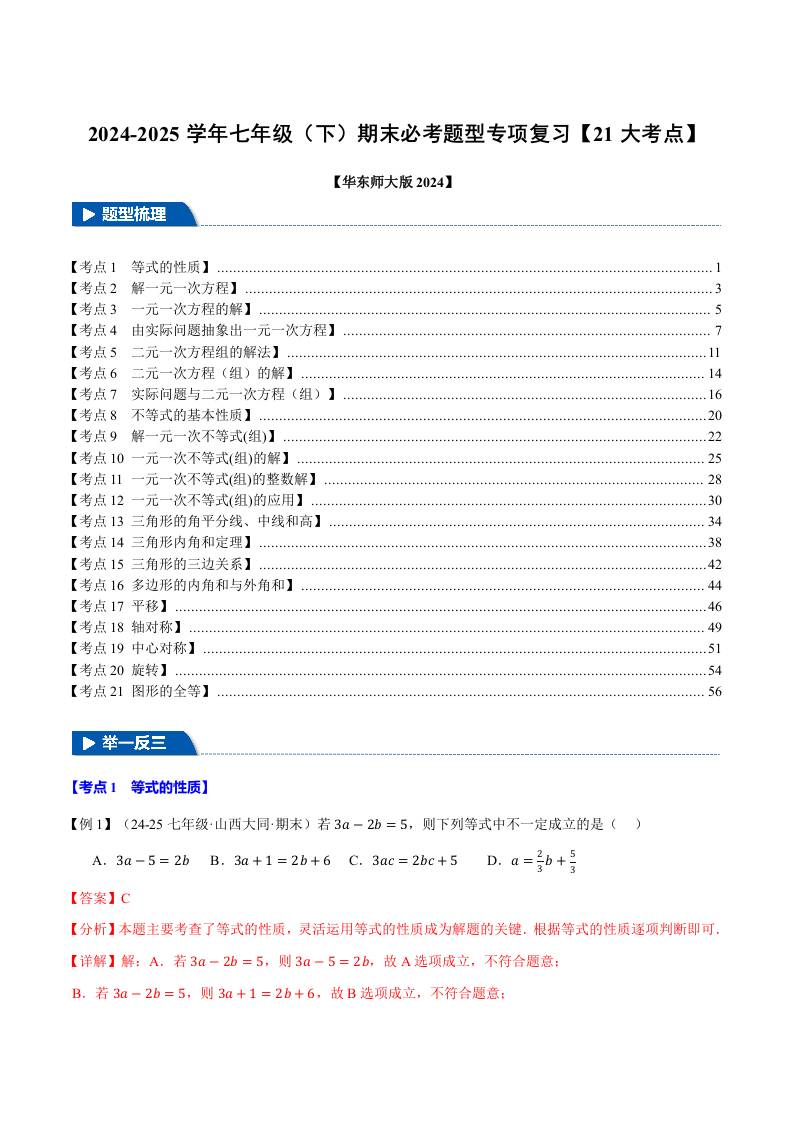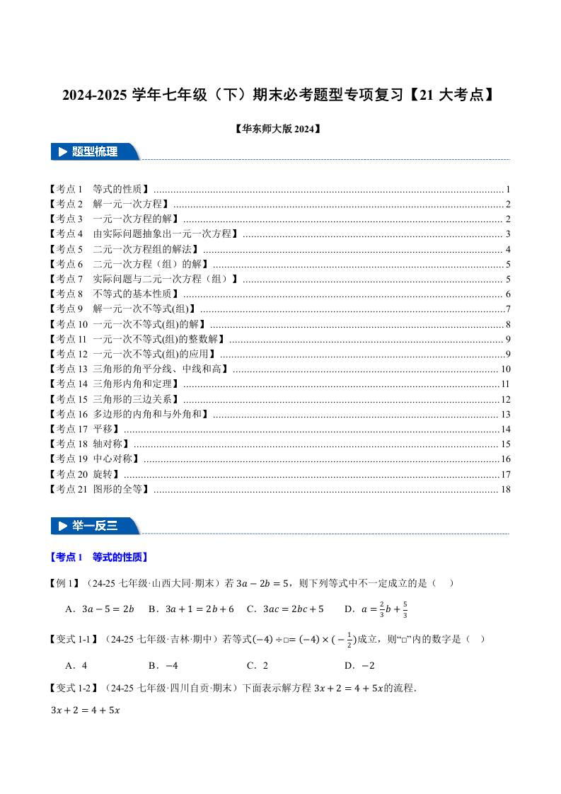 七年级(下)期末必考题型专项复习(21大考点)(华东师大版2024)(学生版)
