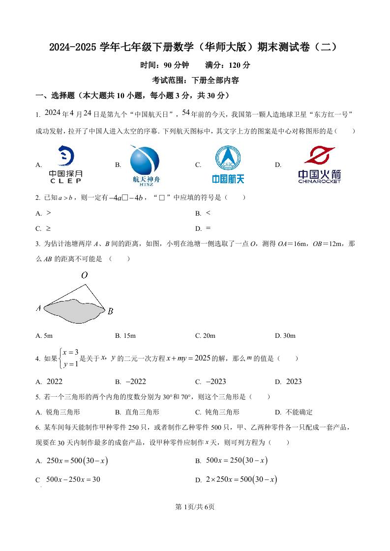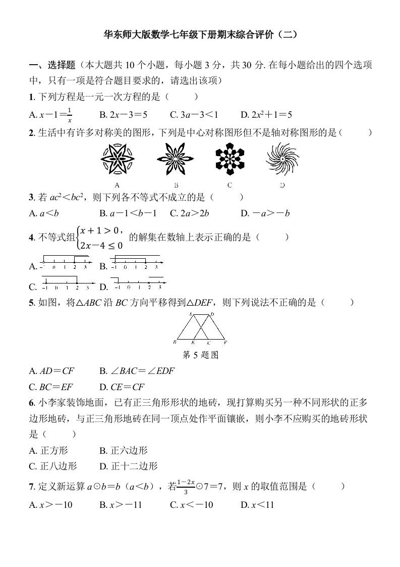 精品解析:期末测试卷(二)华东师大版七年级数学下册(原卷版)