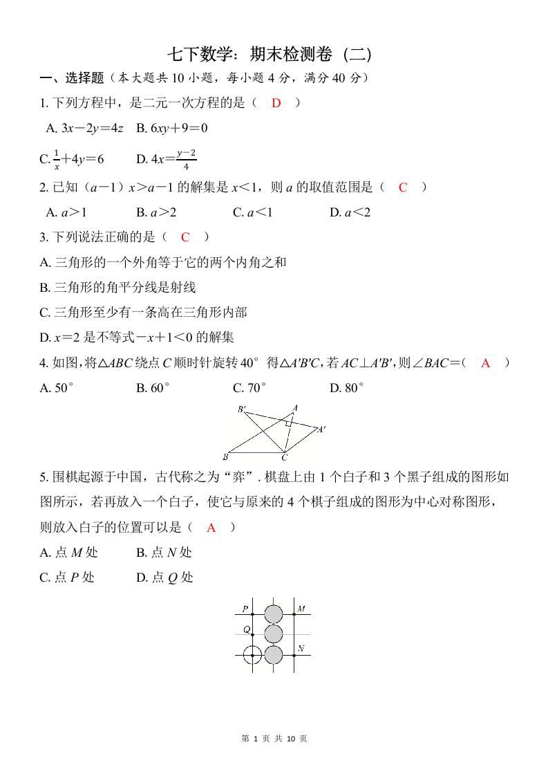期末模拟检测卷(二) 2024-2025学年华东师大版七年级数学下册--教用