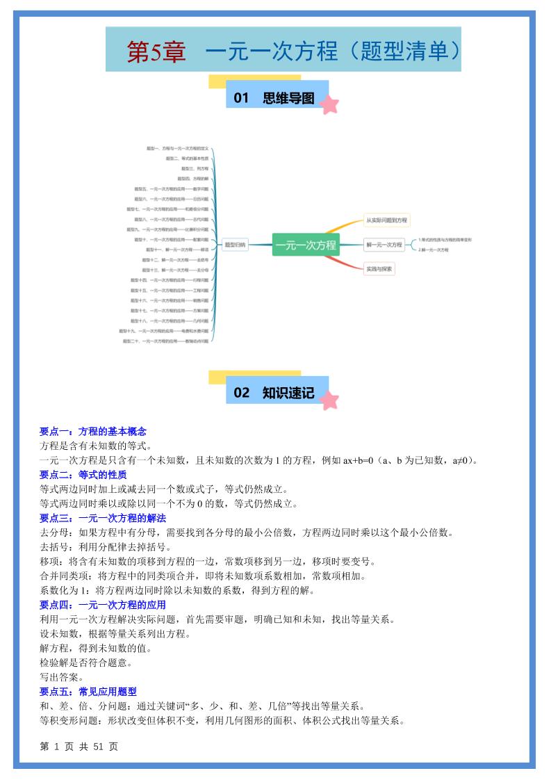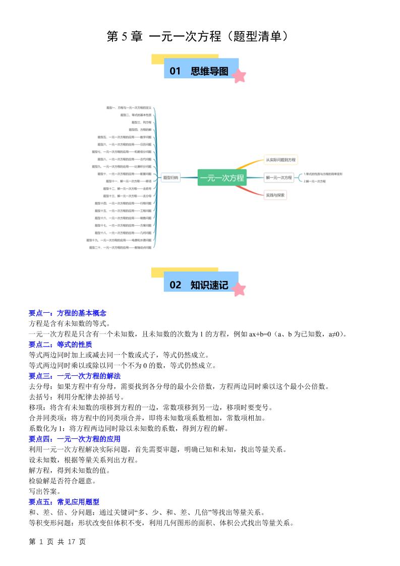 第5章 一元一次方程 知识归纳与题型突破(二十类题型清单)(解析版)