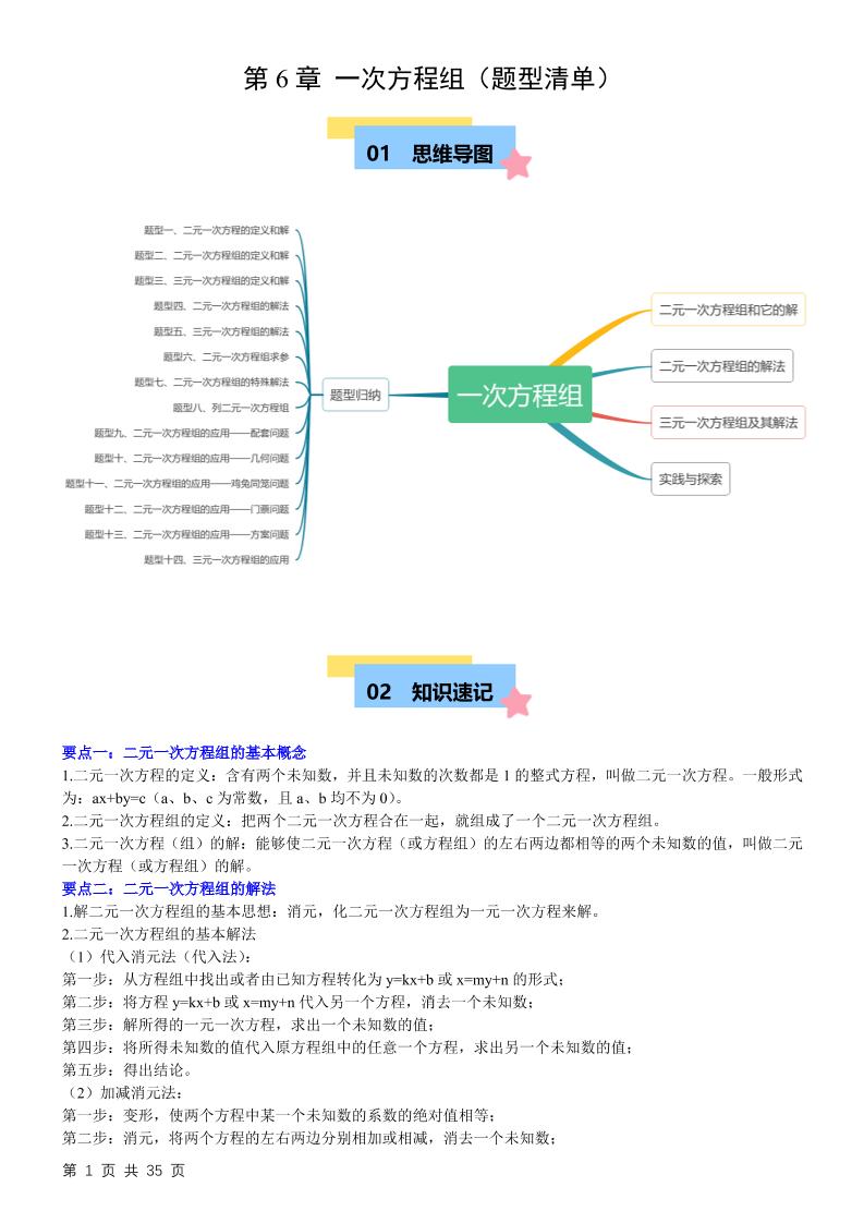 第6章 一次方程组(题型清单) (十四类题型清单)(解析版)