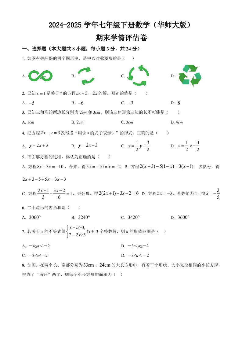 第二学期期末学情评估训练卷 华东师大版七年级数学下册(原卷版)