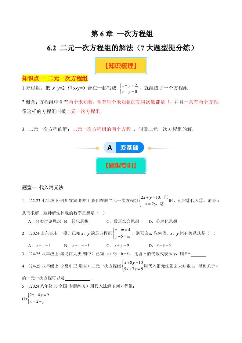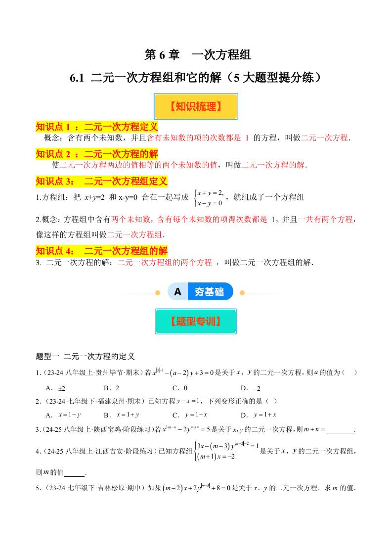 6.1 二元一次方程组和它的解(5大题型提分练)(原卷版)