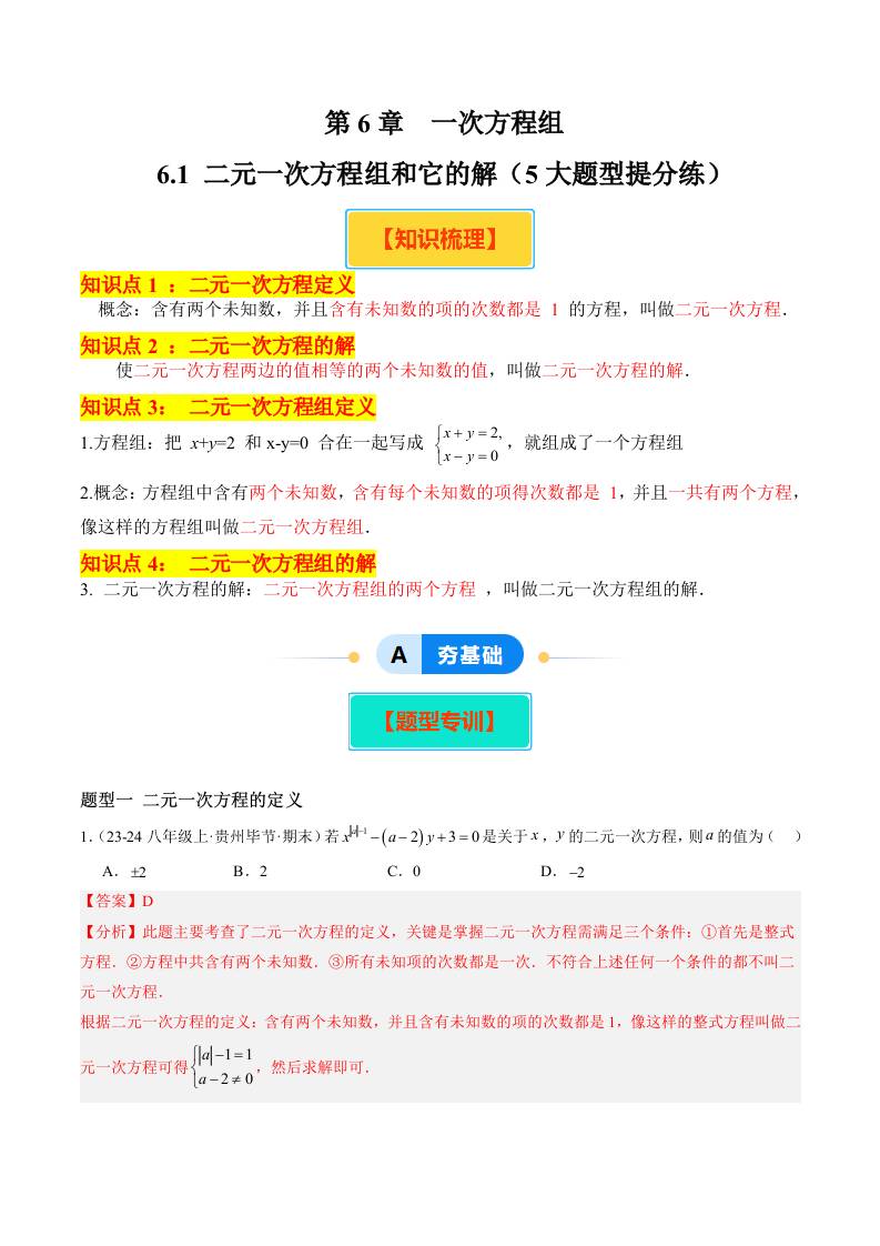 6.1 二元一次方程组和它的解(5大题型提分练)(解析版)