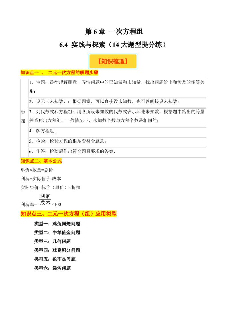 6.4 实践与探索(14大题型提分练)(原卷版)