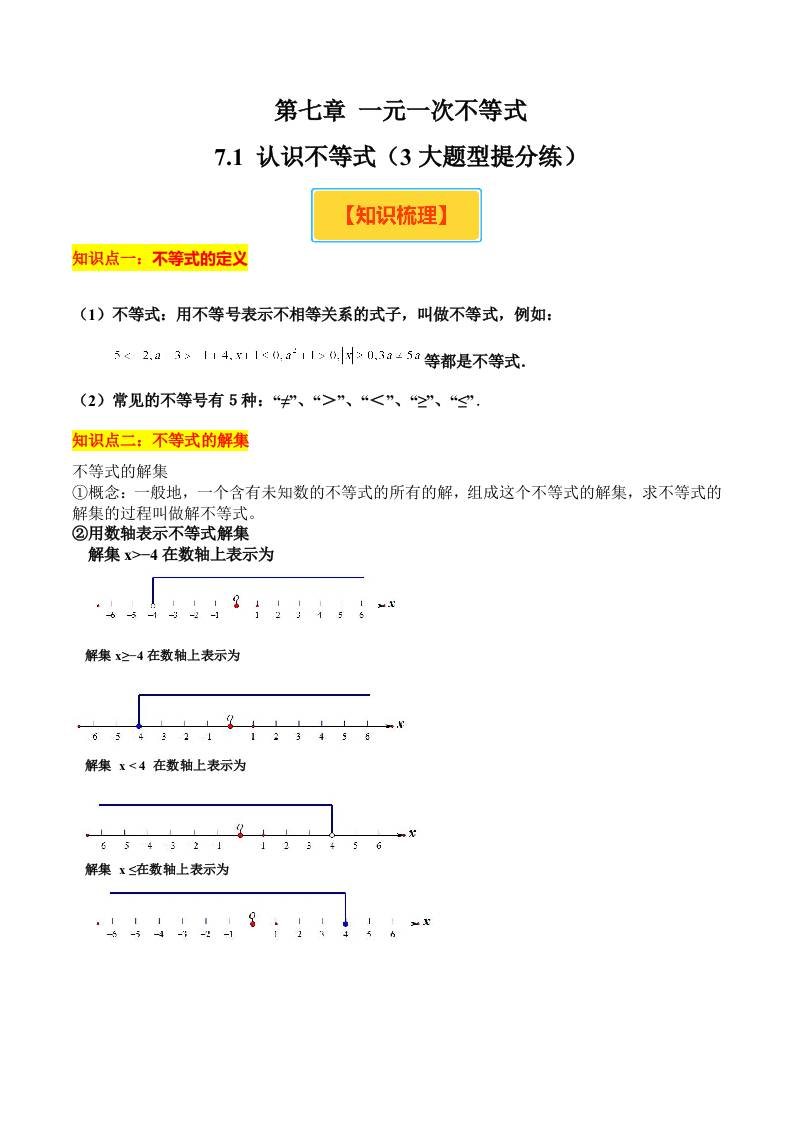 7.1 认识不等式(3大题型提分练)(解析版)