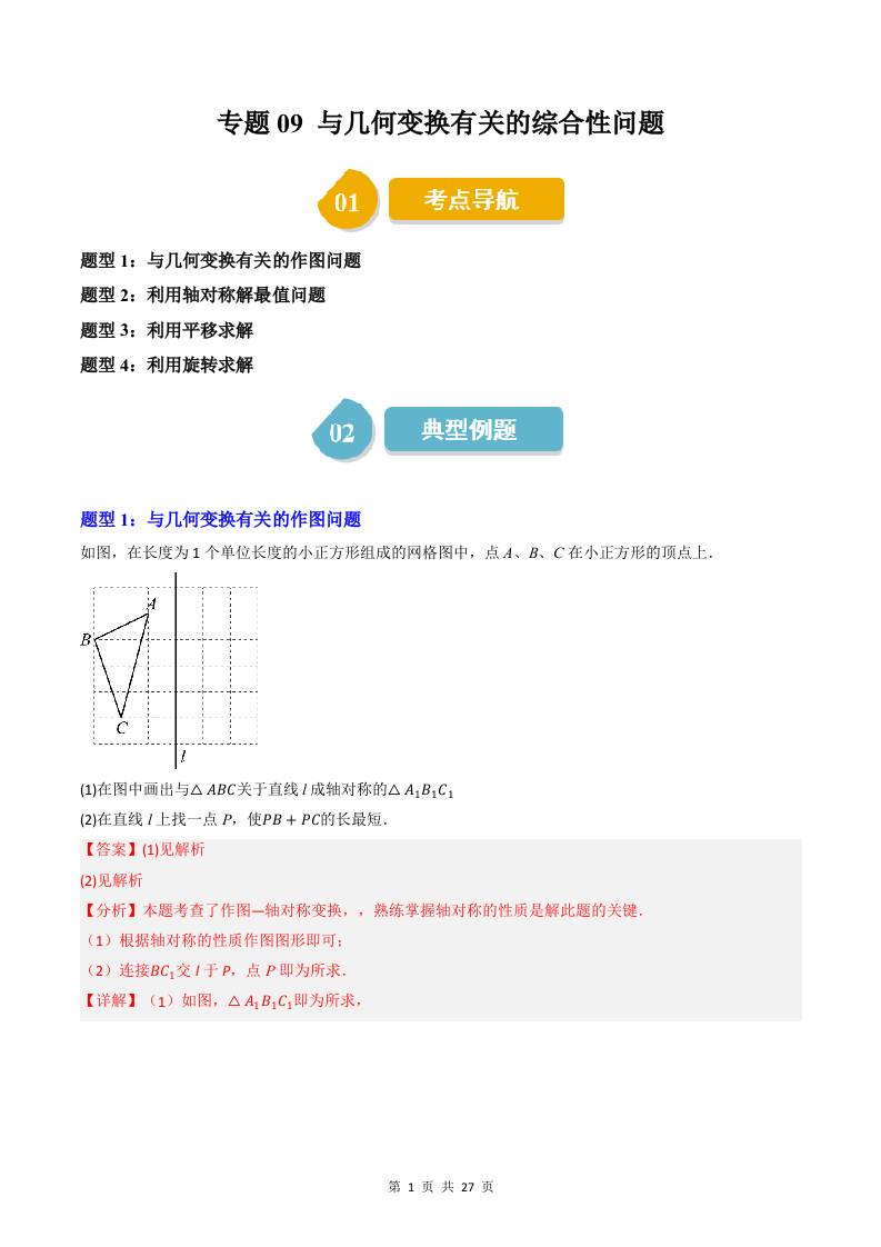 专题09:与几何变换有关的综合性问题(解析版)