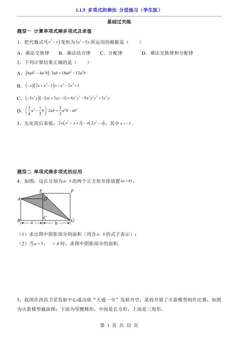 1.1.1-1.1.3 同底数幂的乘法、幂的乘方和积的乘方(分层练习)