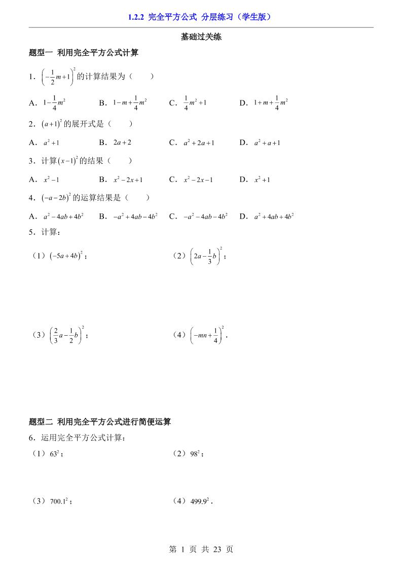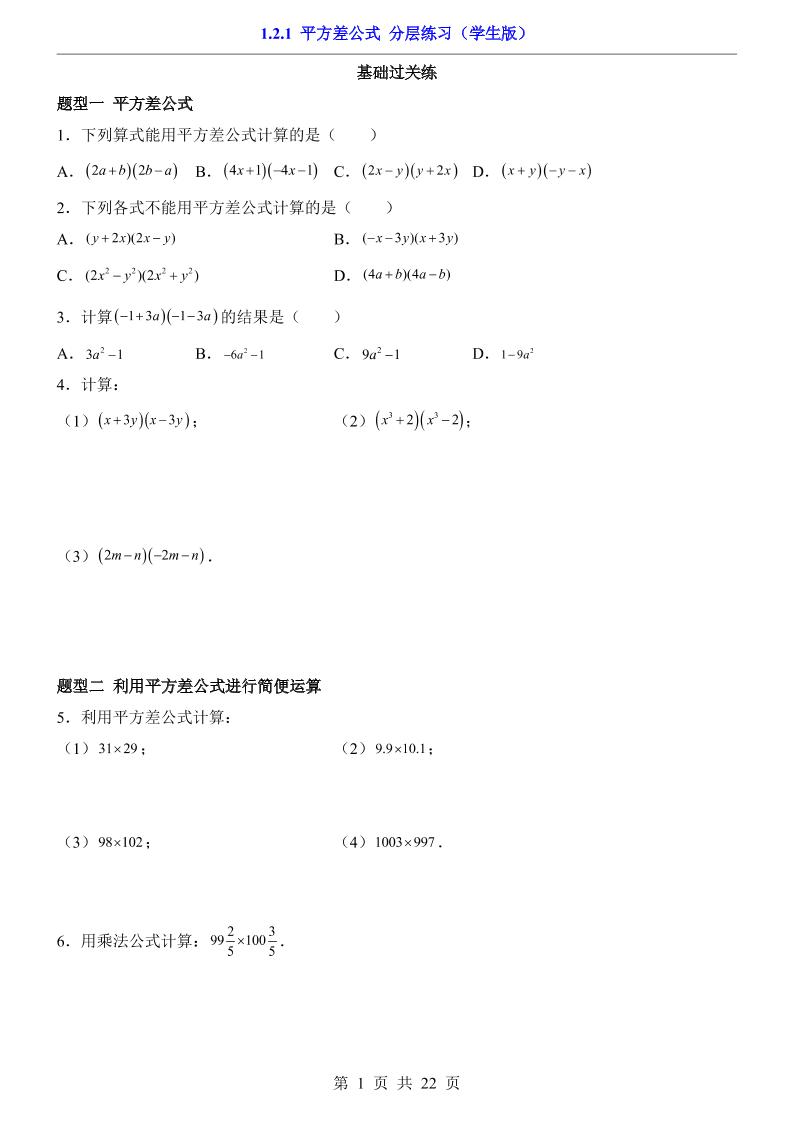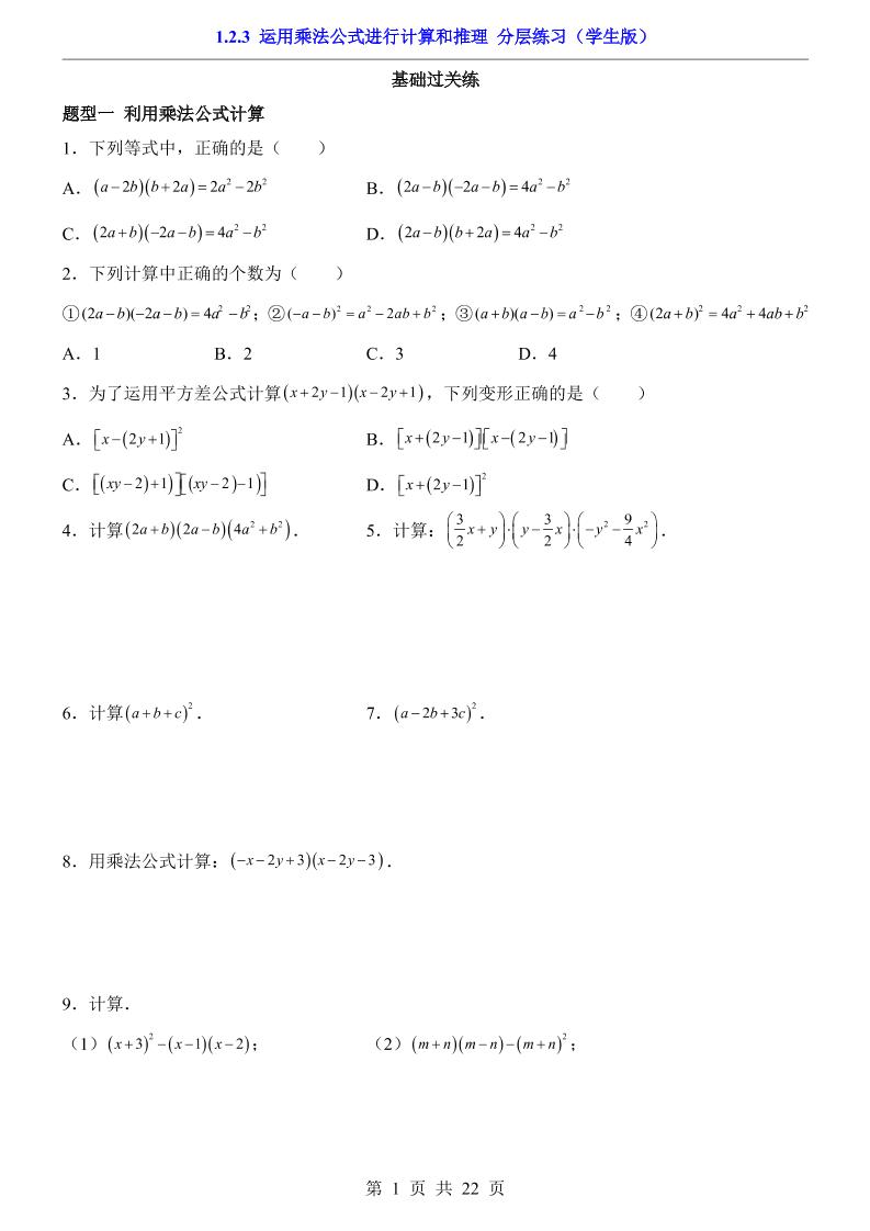 1.2.3 运用乘法公式进行计算和推理(分层练习)