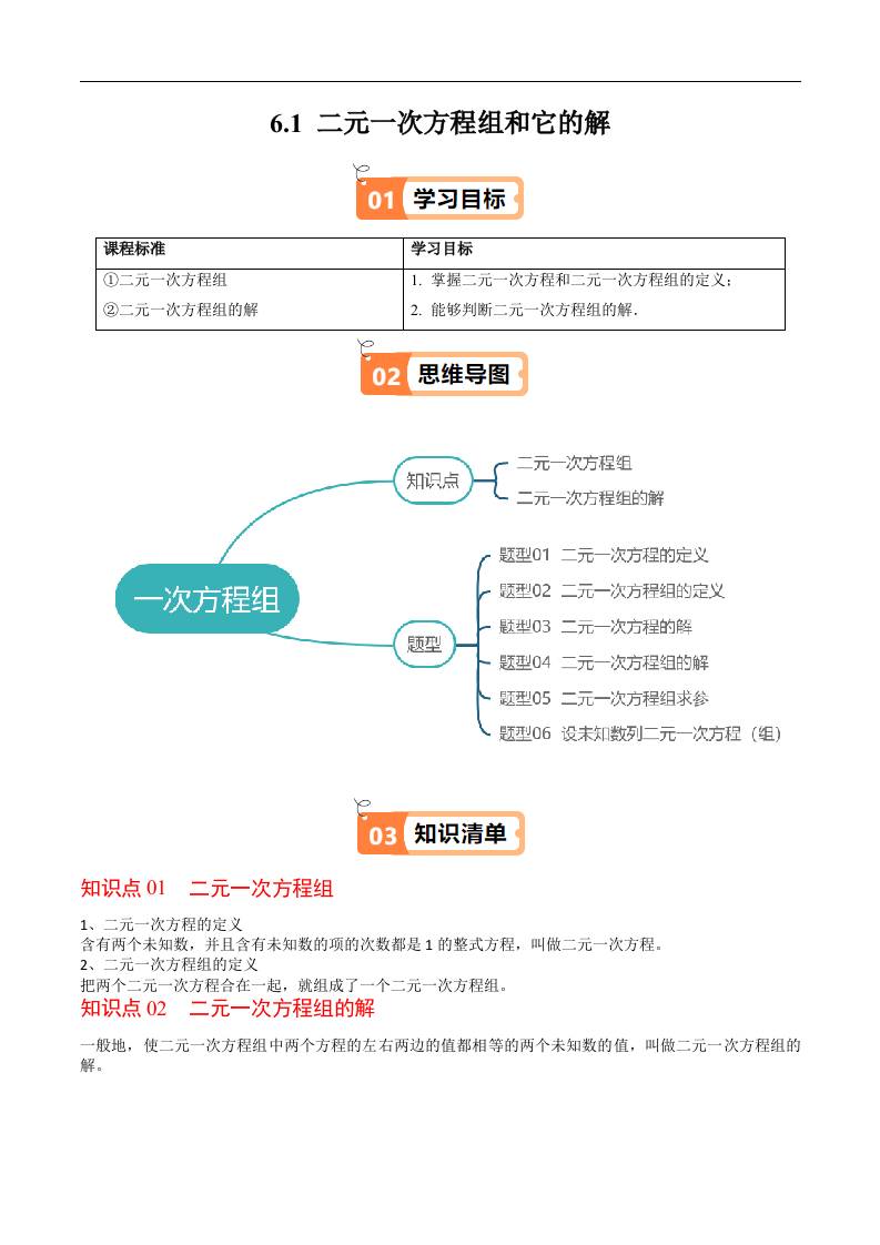 6.1 二元一次方程组和它的解(原卷版)-七年级数学下册同步学与练(华东师大版2024)