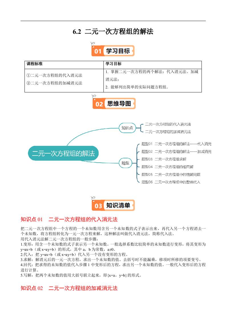 6.2 二元一次方程组的解法(原卷版)-七年级数学下册同步学与练(华东师大版2024)