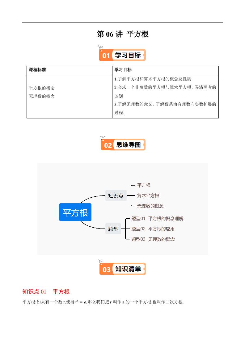 第06讲 平方根(原卷版)