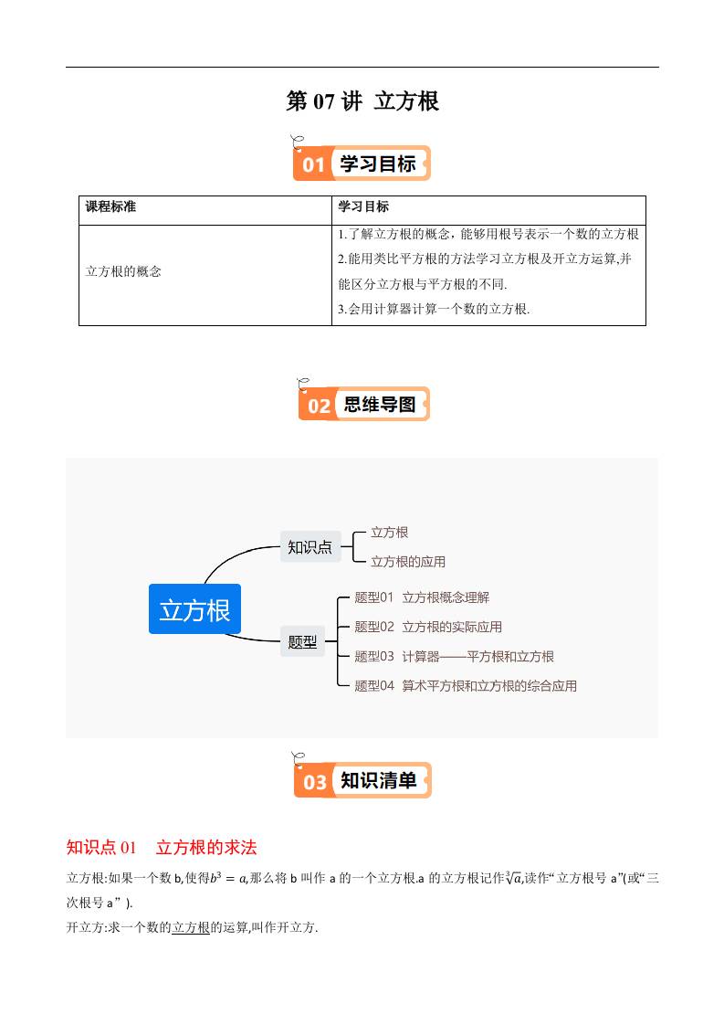 第07讲 立方根(原卷版)