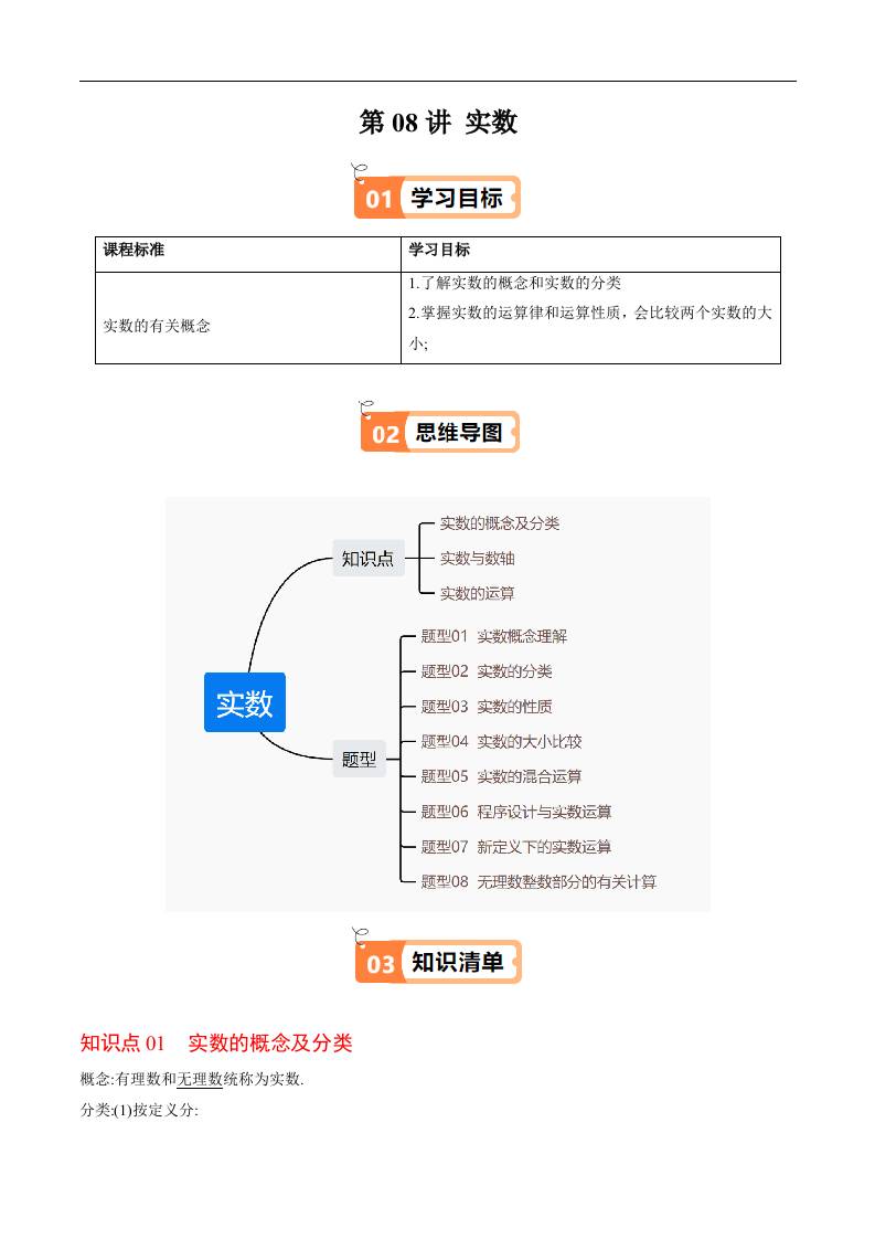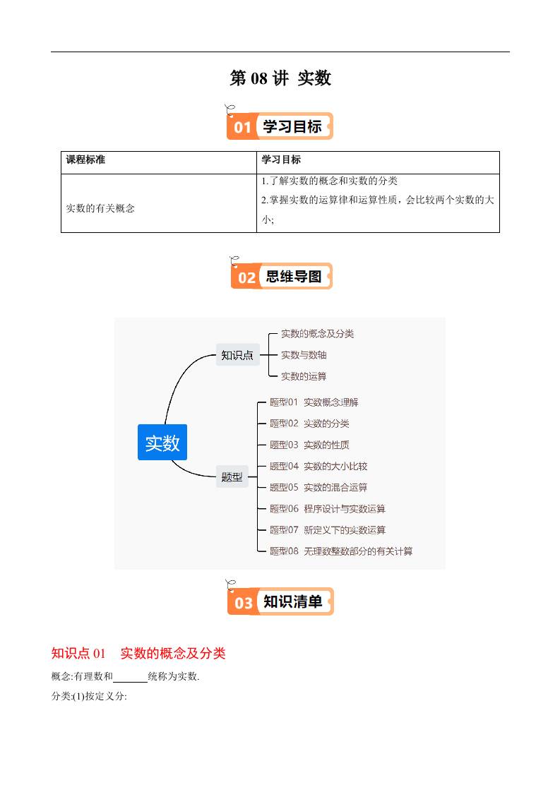 第08讲 实数(原卷版)