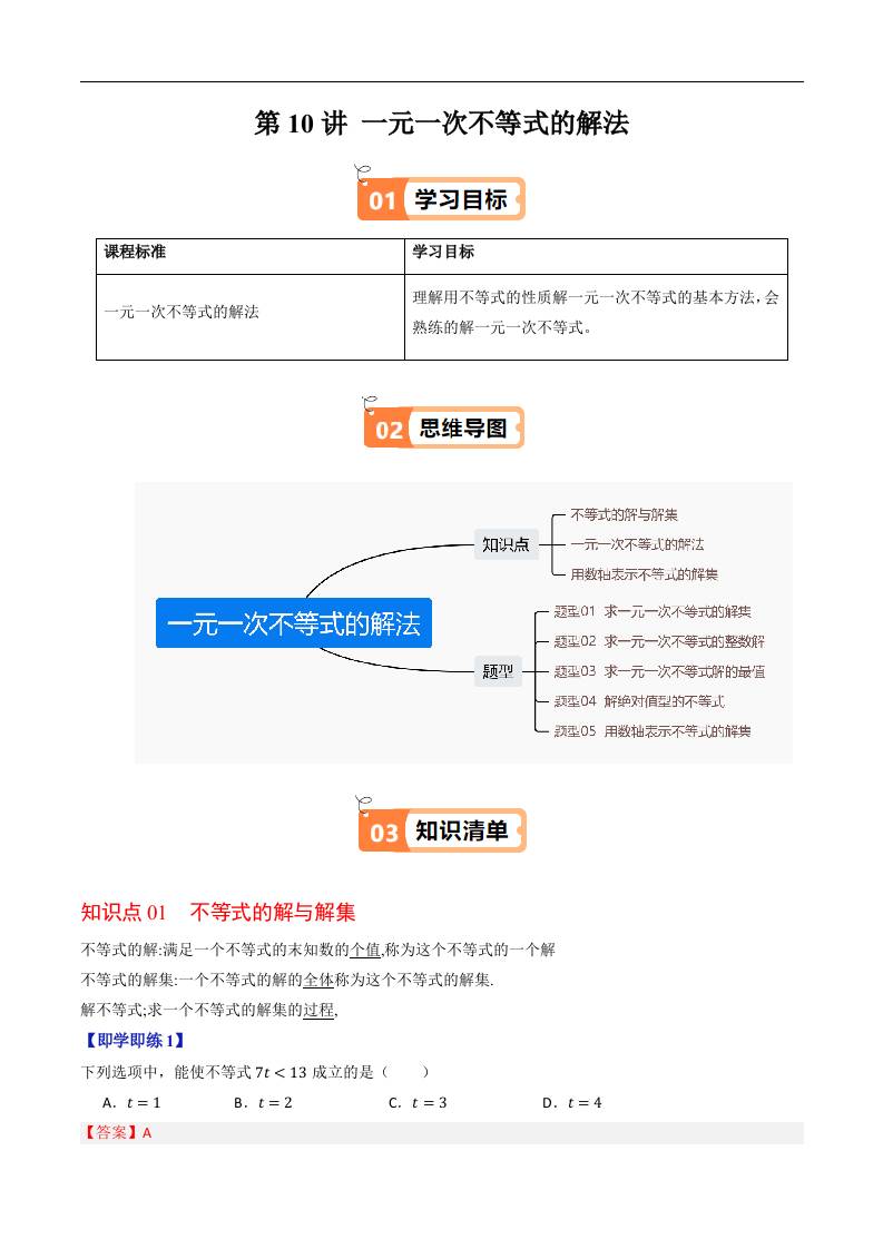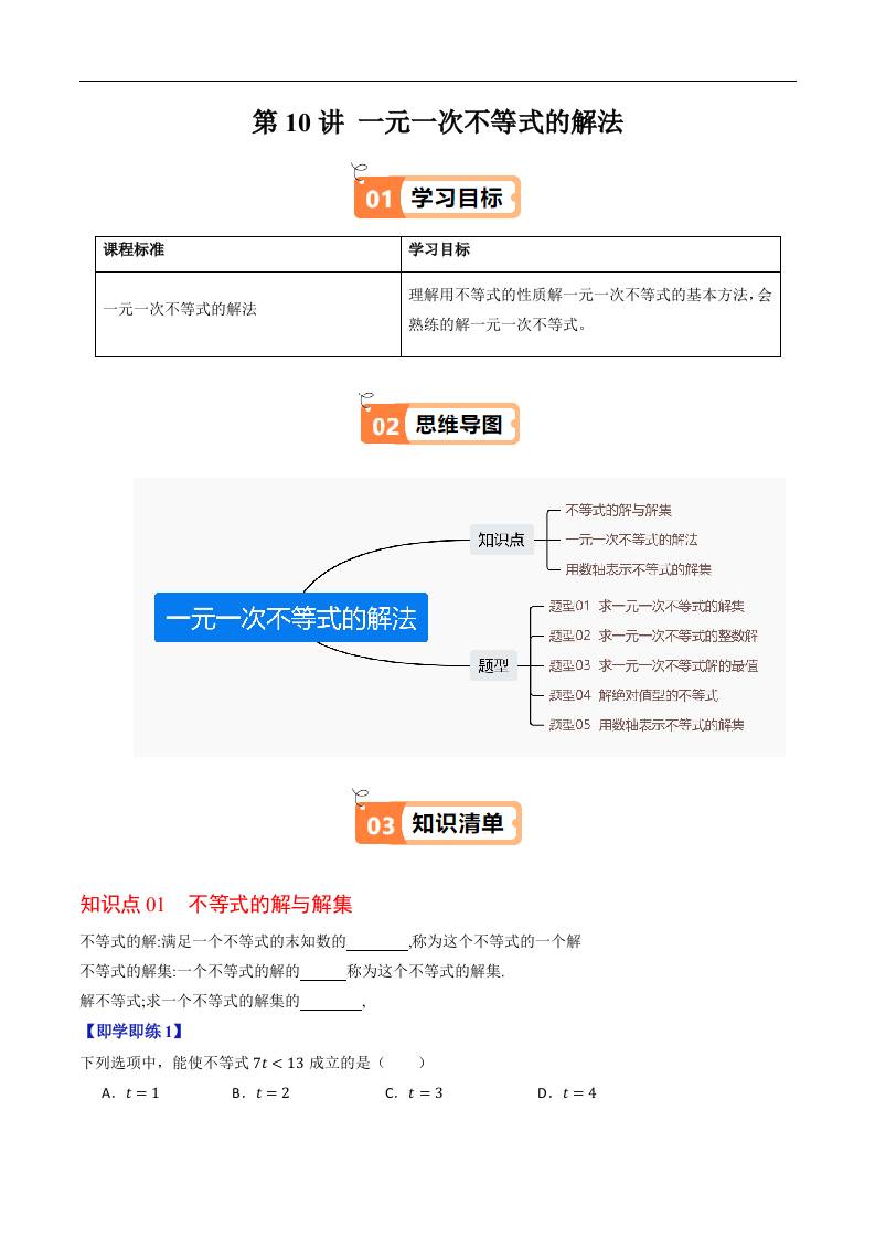 第10讲 一元一次不等式的解法(原卷版)