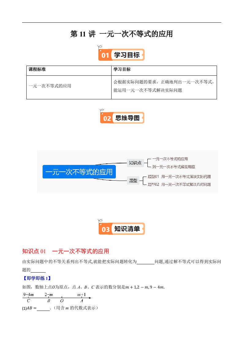 第11讲 一元一次不等式的应用(原卷版)