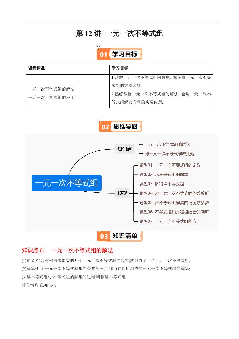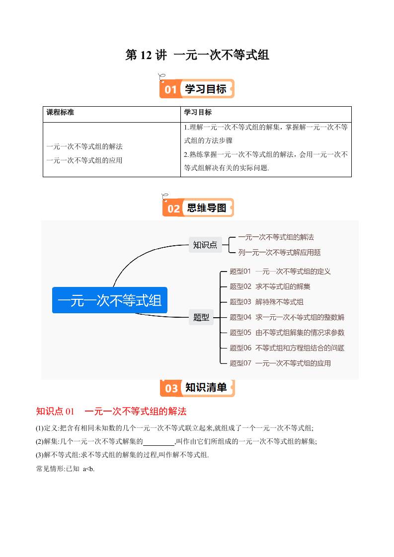 第12讲 一元一次不等式组(原卷版)