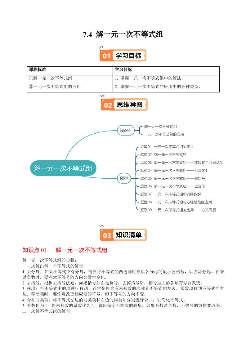 7.4 解一元一次不等式组(学生版)