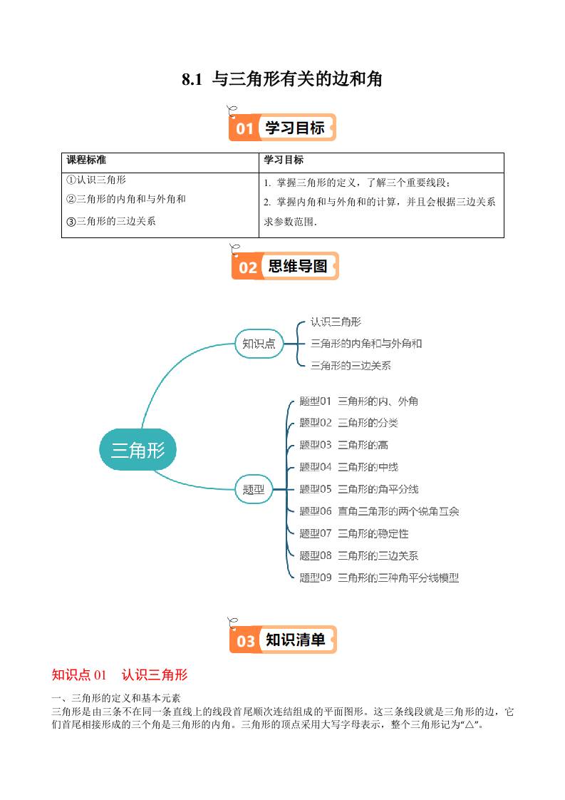 8.1 与三角形有关的边和角(学生版)