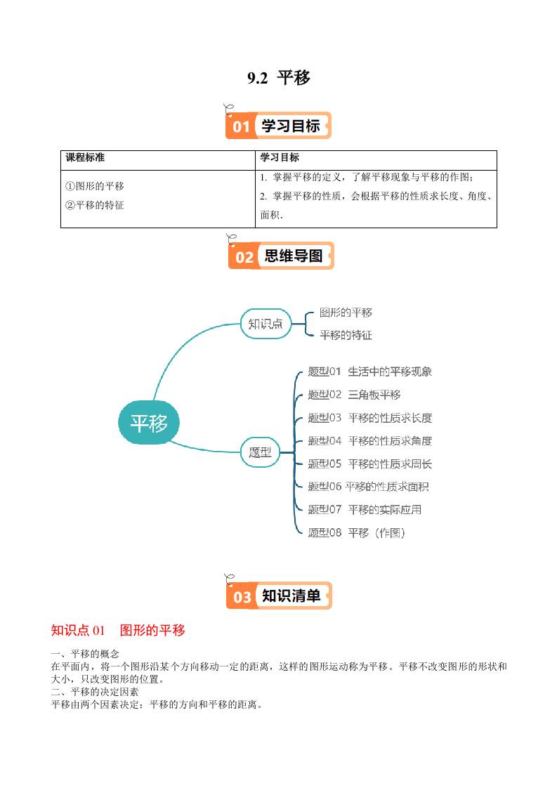 9.2 平移 (教师版)