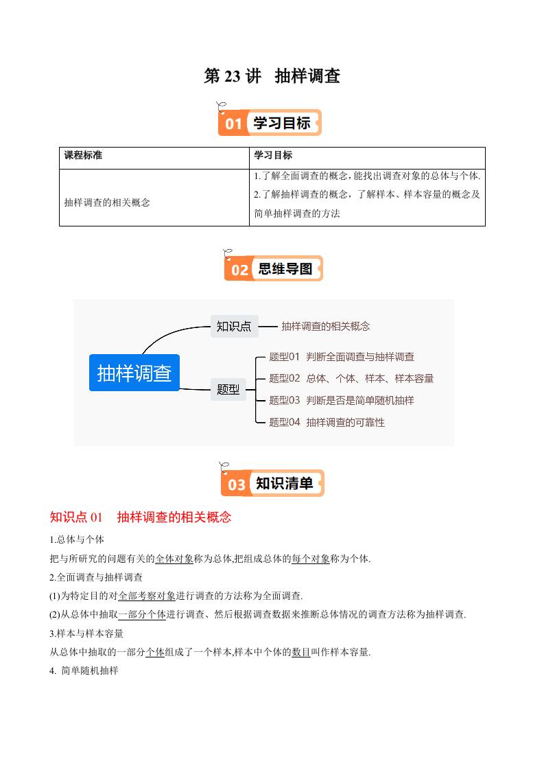 第23讲 抽样调查(解析版)