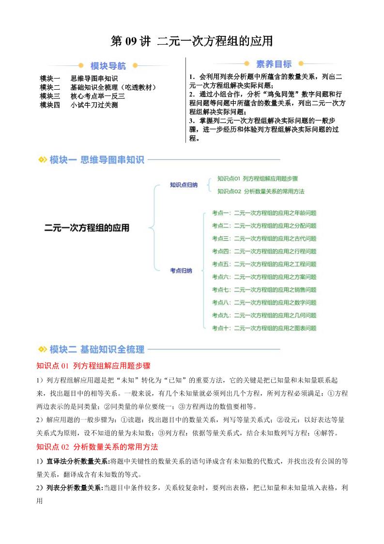 寒假预习第09讲 二元一次方程组的应用(2个知识点 10大考点 过关检测)(解析版)