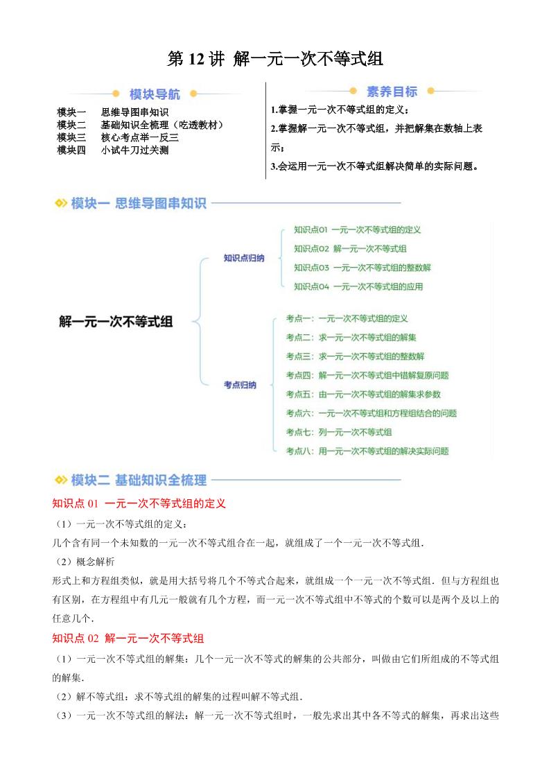 寒假预习第12讲 解一元一次不等式组(4个知识点 8大考点 过关检测)(解析版)