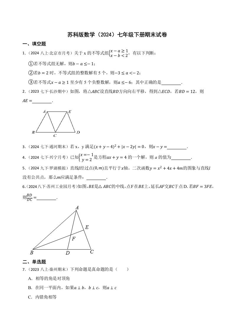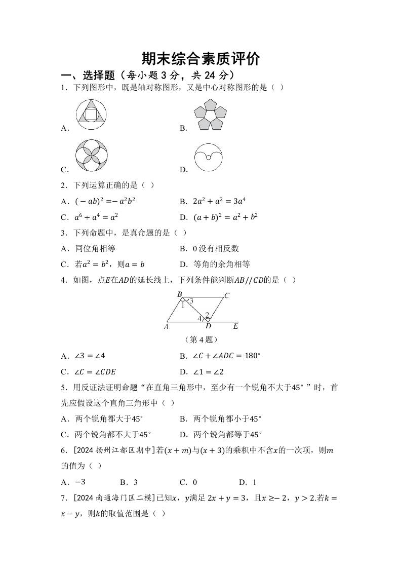 苏科版数学(2024)七年级下册期末试卷(含答案)