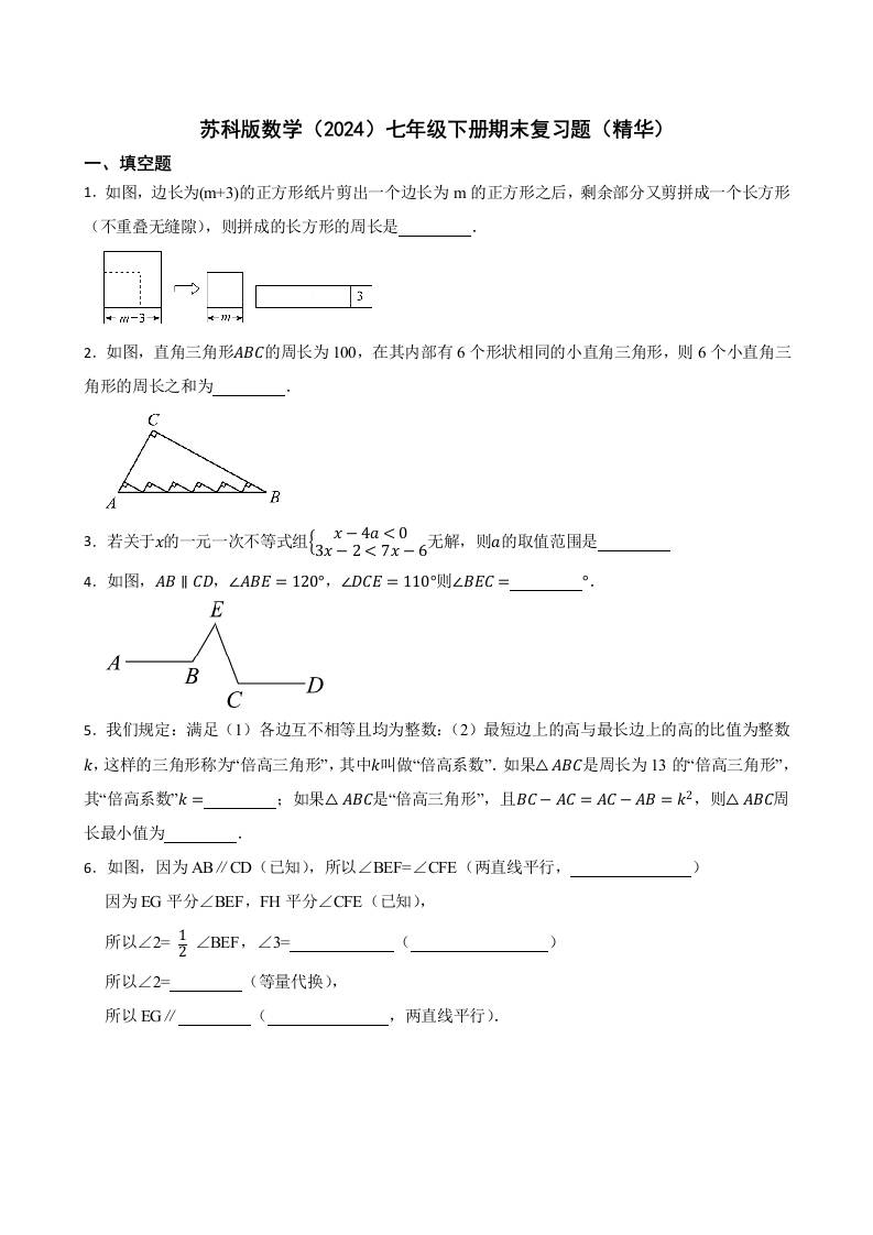 苏科版数学(2024)七年级下册期末复习题(精华)(含答案)