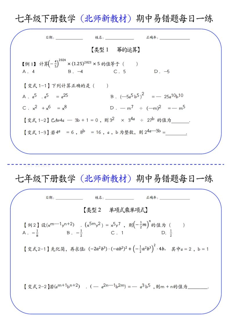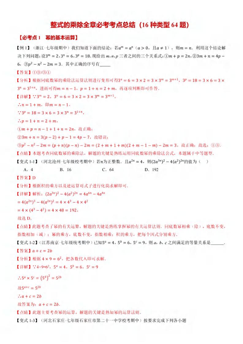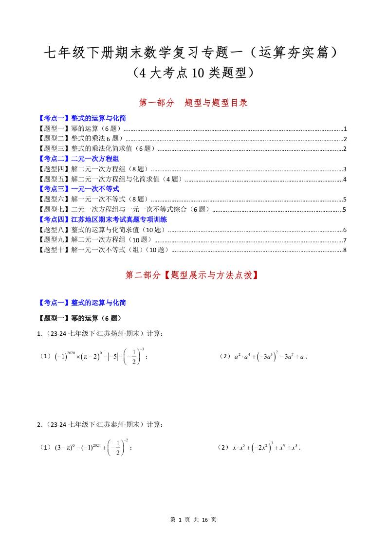 七年级下册期末数学复习专题一(运算夯实篇)(4大考点10类题型)(苏科版)(原卷版)