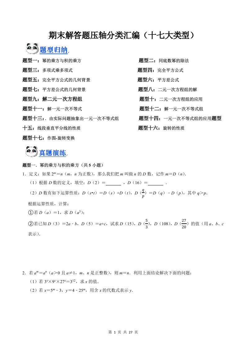期末解答题压轴分类汇编(十七大类型)(原卷版)