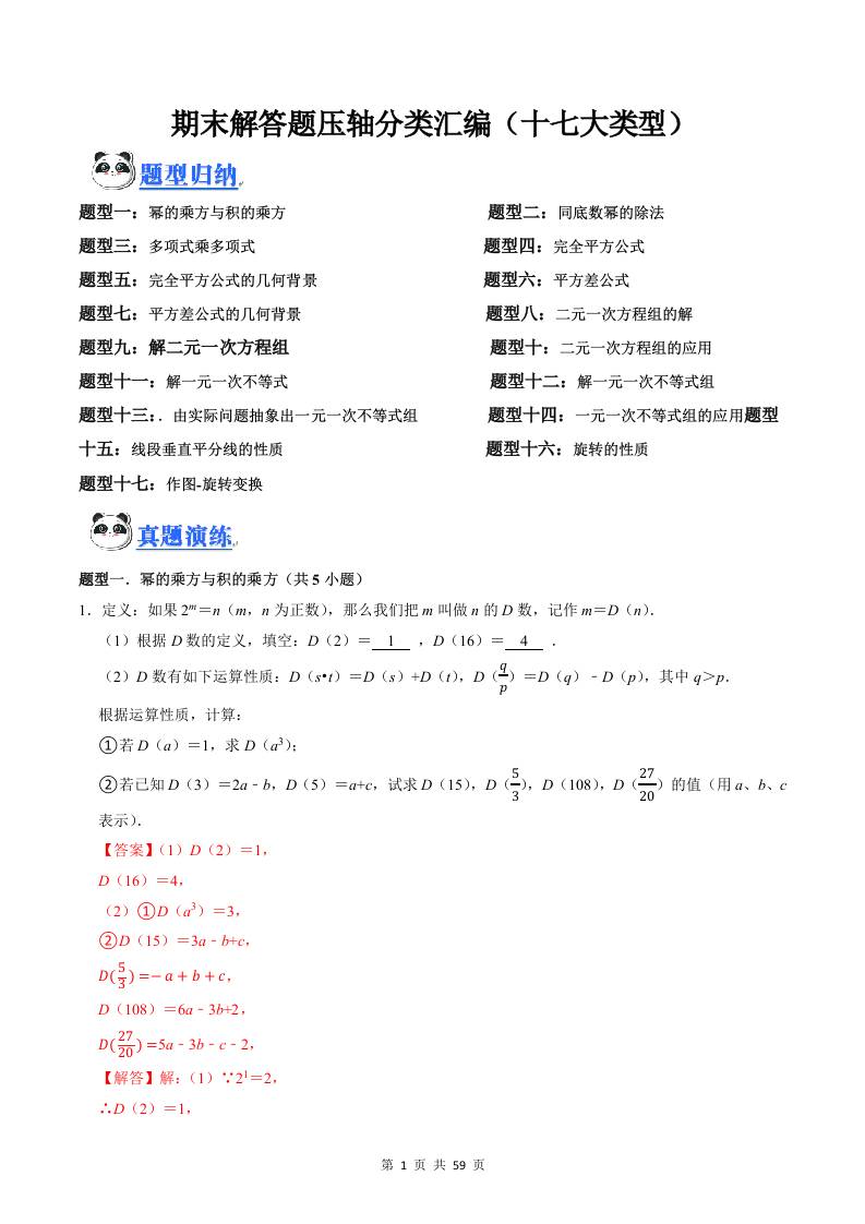 期末解答题压轴分类汇编(十七大类型)(解析版)