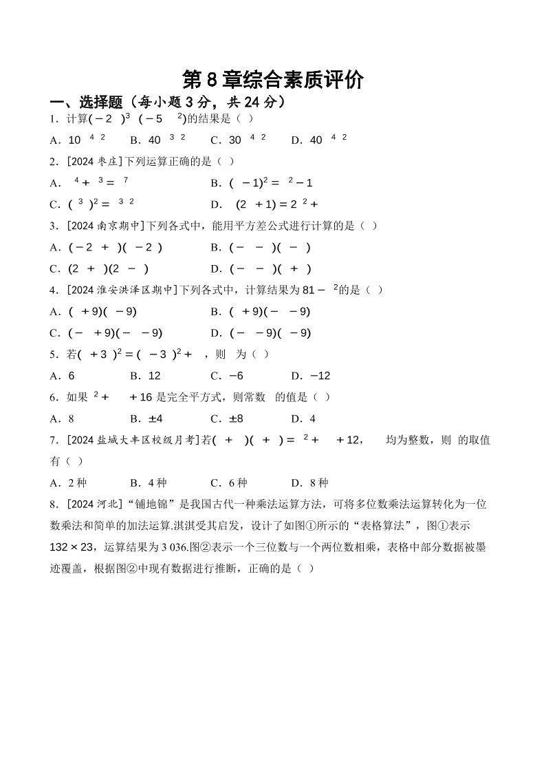 第8章 整式乘法 综合素质评价(含答案)2025学年苏科版七年级数学下册