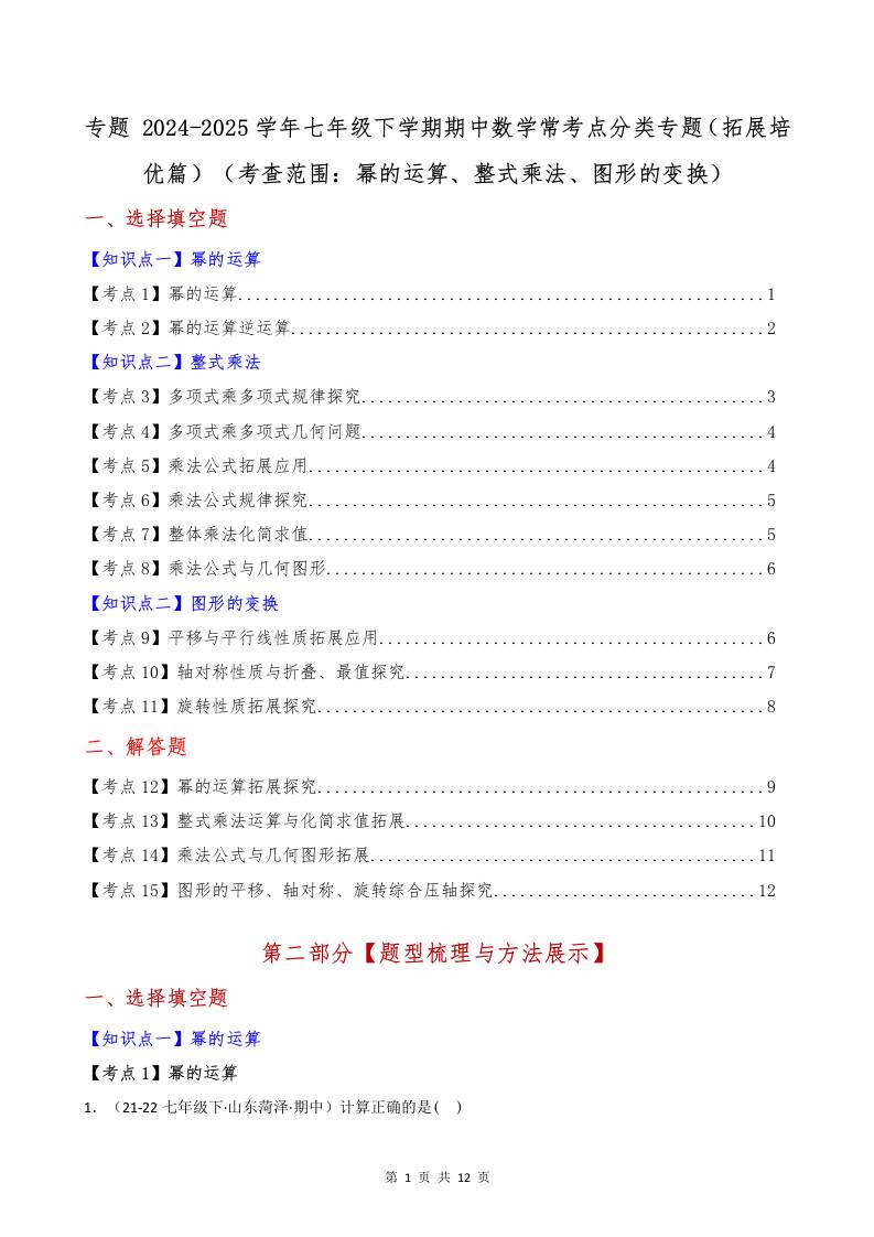 期中压轴题专项卷(苏科版2024)【测试范围:幂的运算~图形的变换】