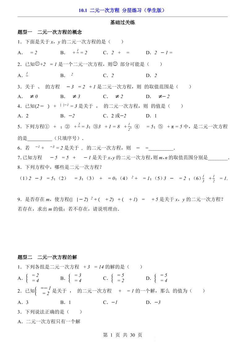 10.1 二元一次方程(分层练习)