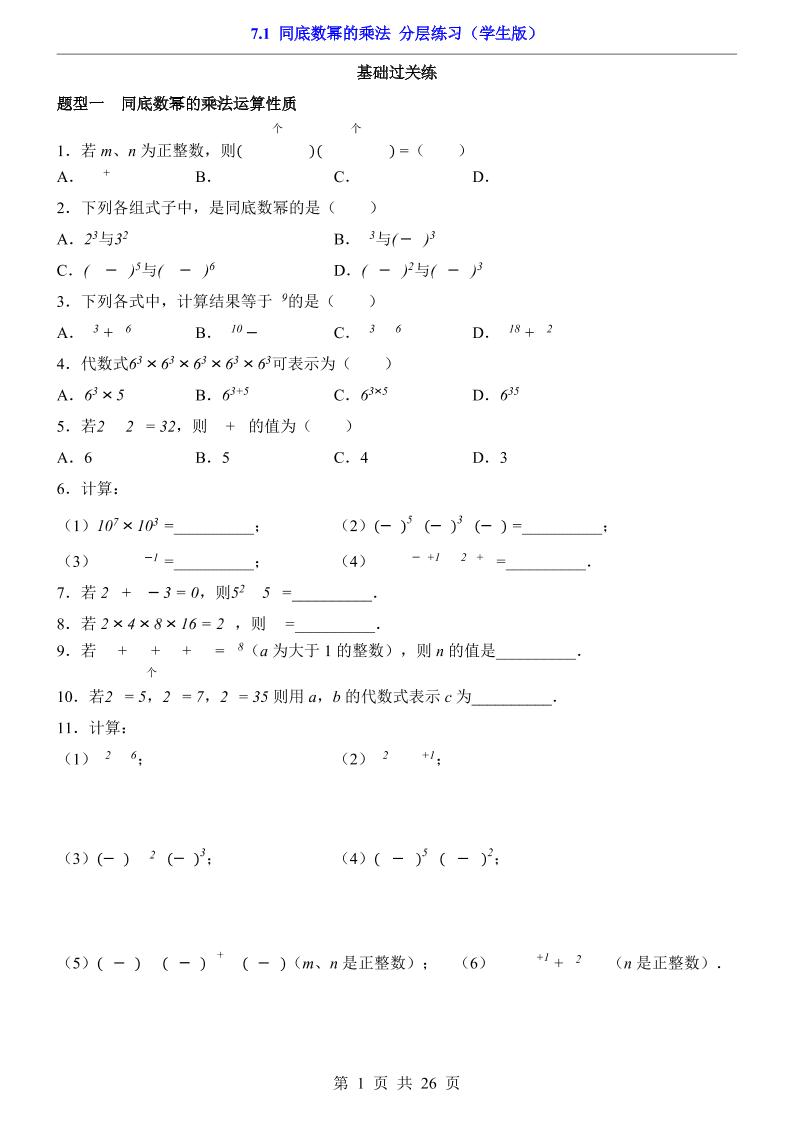 7.1 同底数幂的乘法(分层练习)