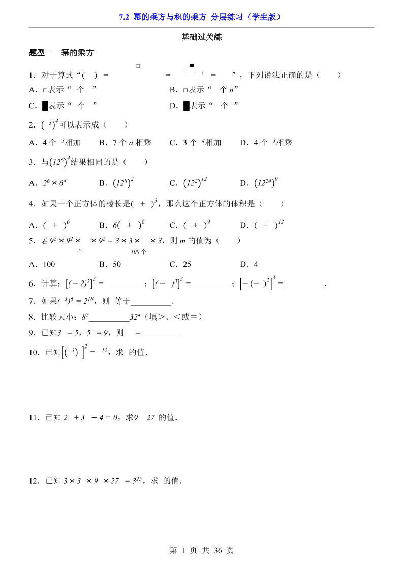 7.2 幂的乘方与积的乘方(分层练习)