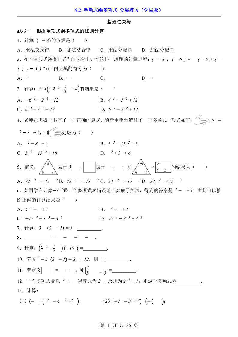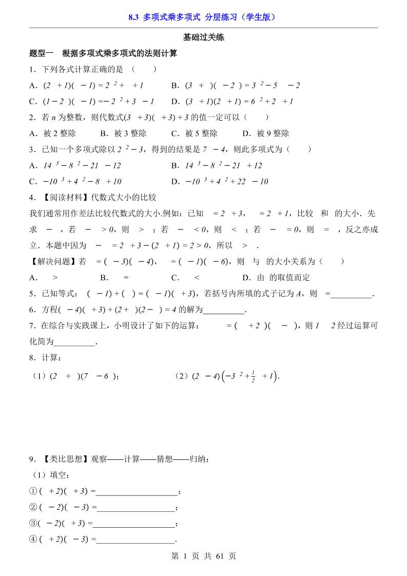 8.3 多项式乘多项式(分层练习)