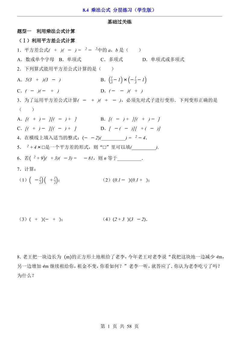 8.4 乘法公式(分层练习)