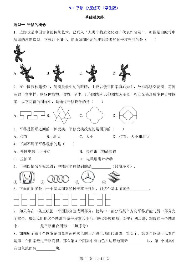 9.1 平移(分层练习)