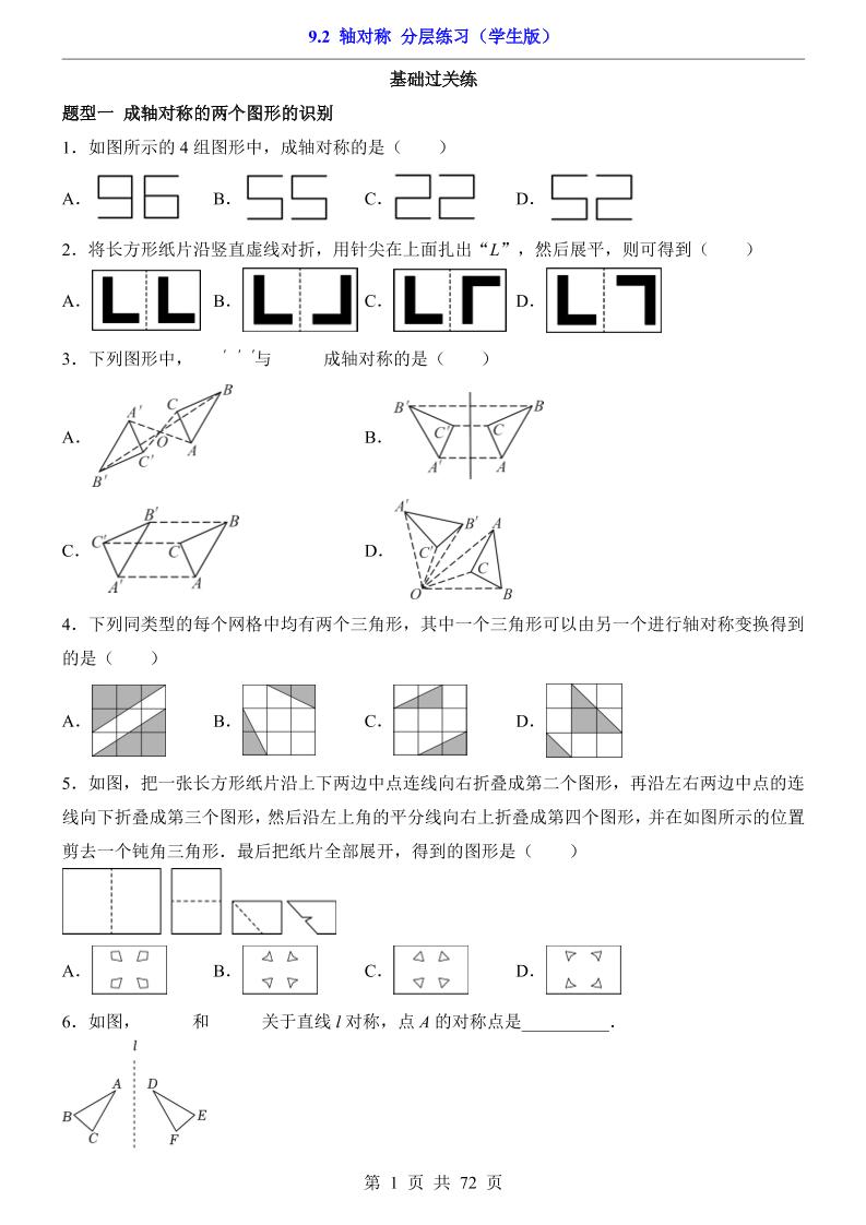 9.2 轴对称(分层练习)