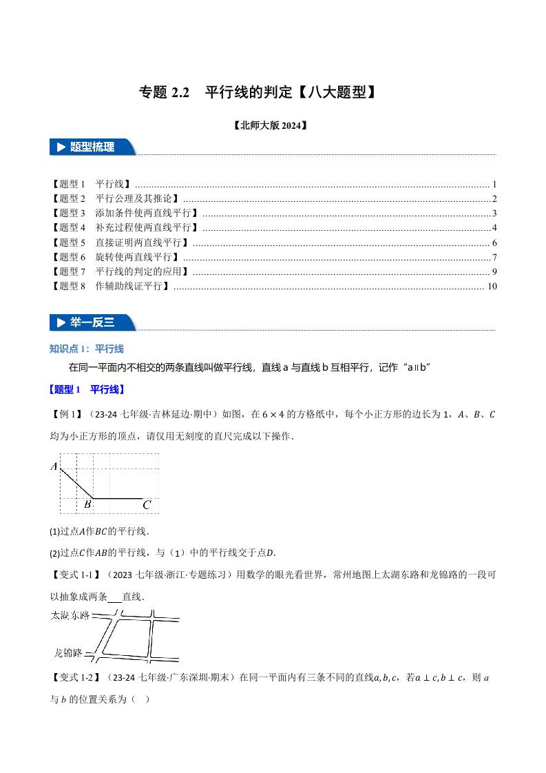 专题2.2 平行线的判定【八大题型】(举一反三)(北师大版2024)(原卷版)