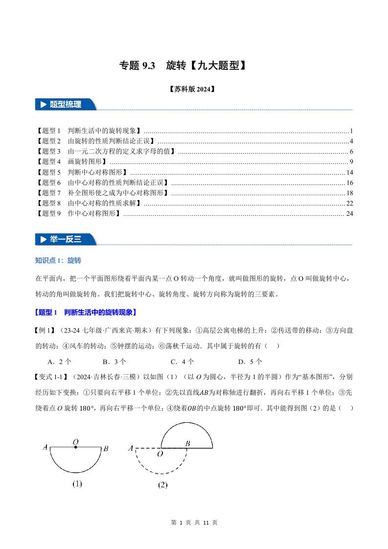 专题9.3 旋转【九大题型】(举一反三)(苏科版2024)(原卷版)